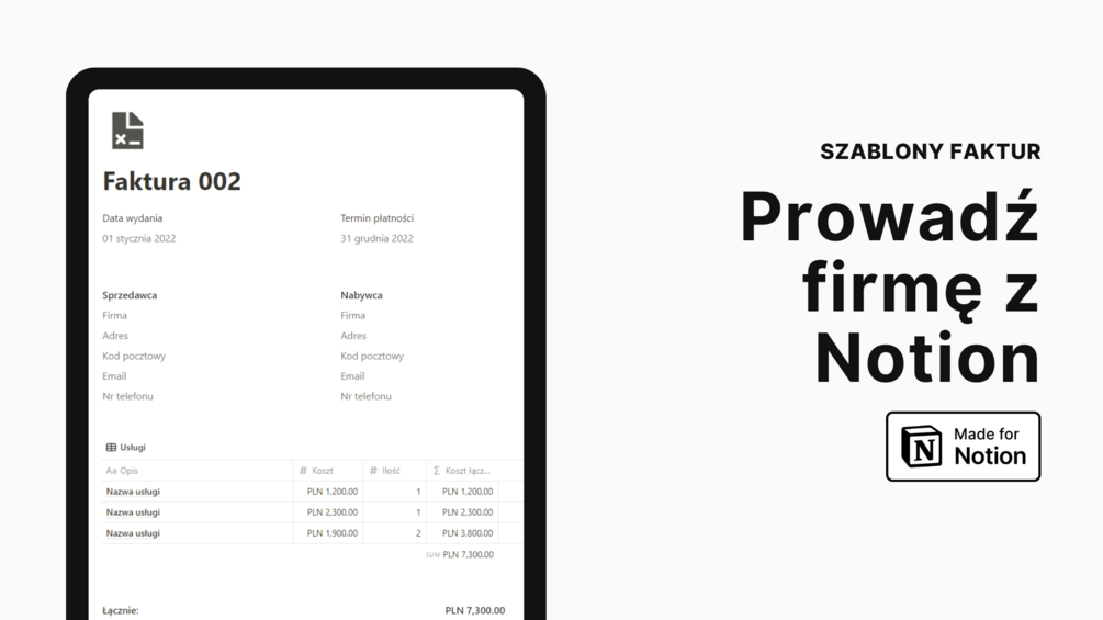 Ze względu na charakter produktów cyfrowych, zakupione szablony Notion nie podlegają zwrotowi ani wymianie.